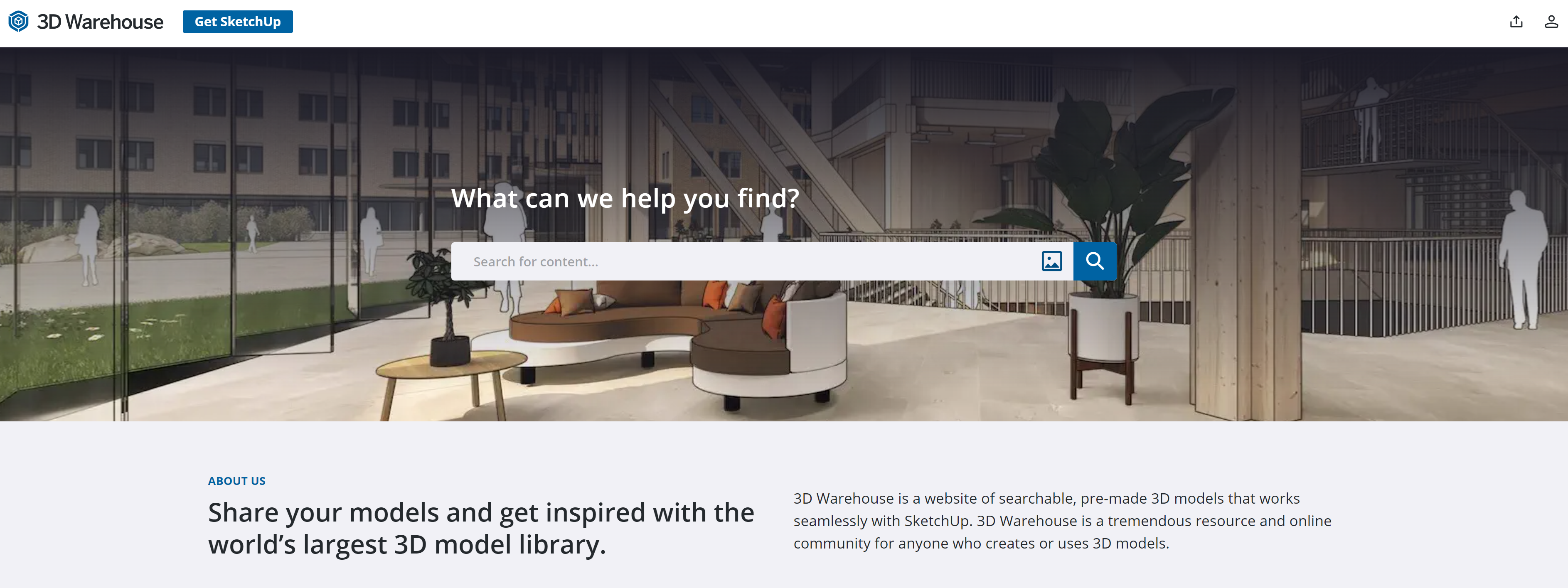 스케치업 웨어하우스는 수백만 개의 3D 모델을 제공하며, 대부분의 모델은 무료로 다운로드할 수 있습니다. 사용자들이 제공하는 다양한 모델을 쉽게 가져와 프로젝트에 활용할 수 있어 시간을 절약하고 창의성을 발휘할 수 있는 기회를 제공합니다.