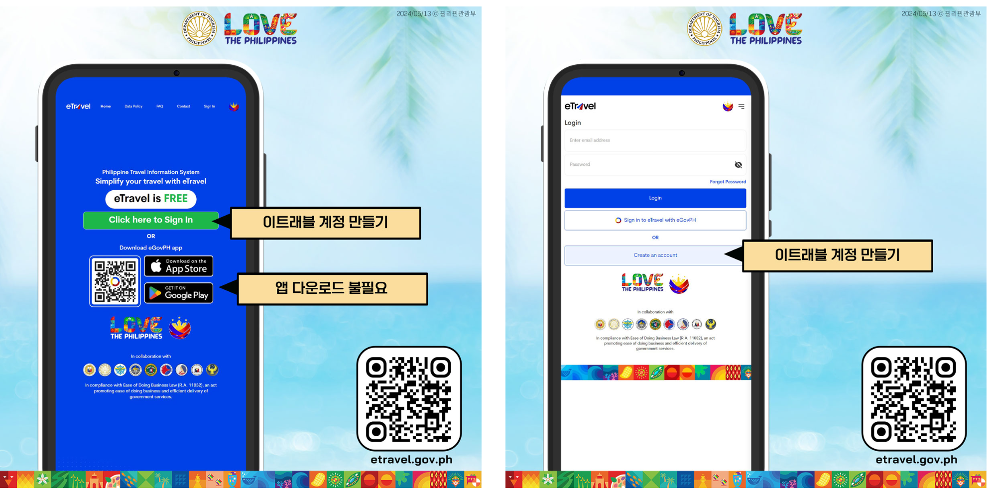 | 이트래블 계정 만들기 (Create an account) | etravel.gov.ph/authentication |