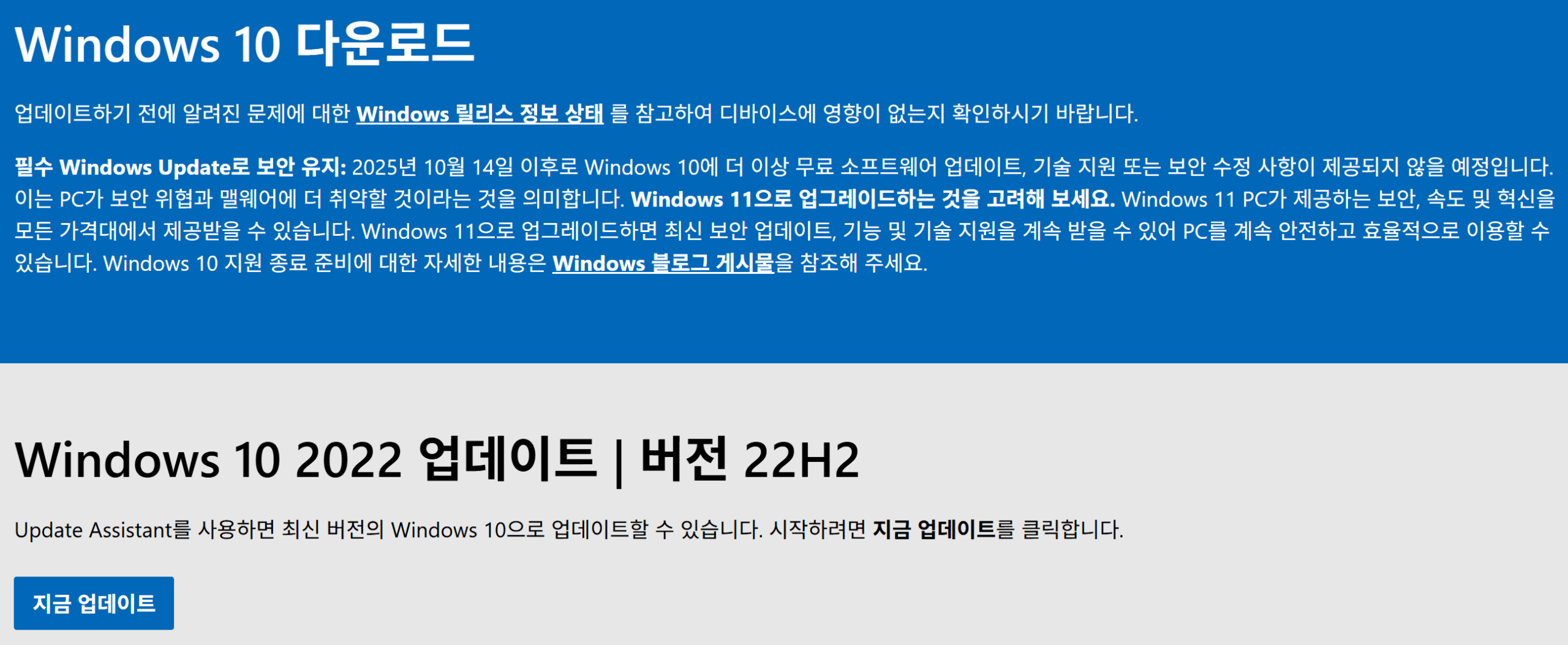 윈도우 업데이트를 통해 업그레이드가 원활하지 않거나, 새로 설치를 원하는 경우 활용할 수 있는 방법입니다.